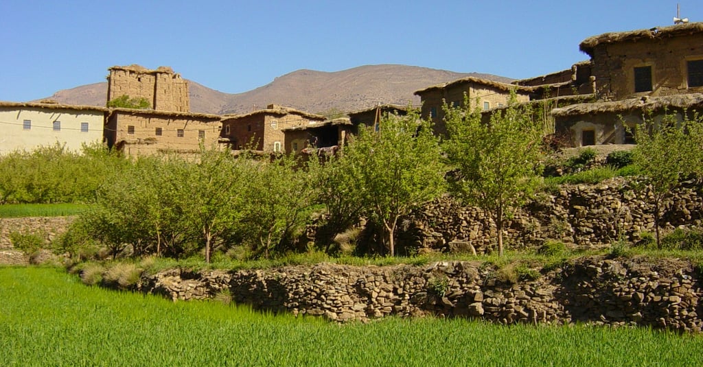 jour : 5 : Départ traversée des villages d’Imlil très renommés au Maroc. Puis on remonte pour atteindre le village d’Arrmed, nuit dans un bon gîte au milieu du village altitude 1900m 3 h à 4 h de marche