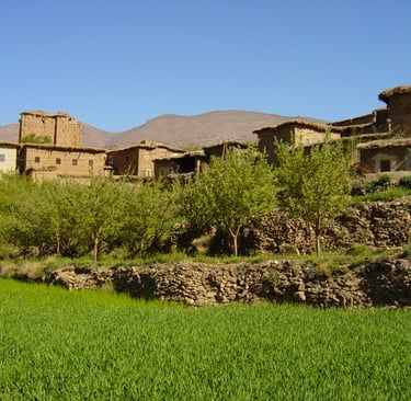 jour : 2 : Marrakech transport en 4x4 via Tahahaout Moulay Brahim puis Asni par la piste passage du col Tacht 2100M début de notre randonnée à pied nous allons atteindre la vallée d’Azzaden (la vallée rouge). Continuation après notre repas de midi arrivée au village Tizin Oussem (2000m) nuit au gîte d’étape au milieu du village 2 à 3 h de marche