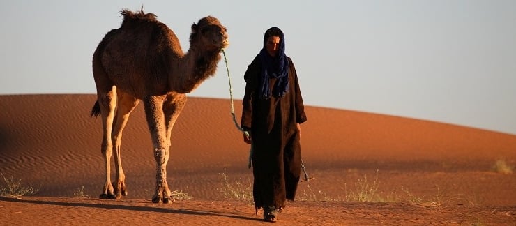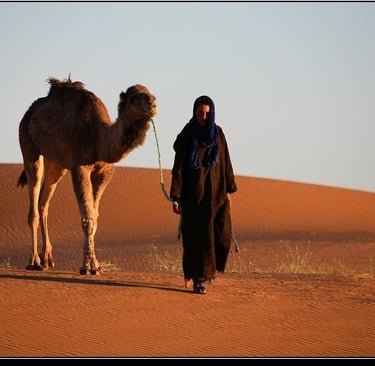 jour 2: Marrakech transport par le col de Tichka 2260 m via Ouarzazate, la vallée du Drâa, Zagora, bivouac dunes de Lalla Kbira. Rendez-vous avec les chameliers.